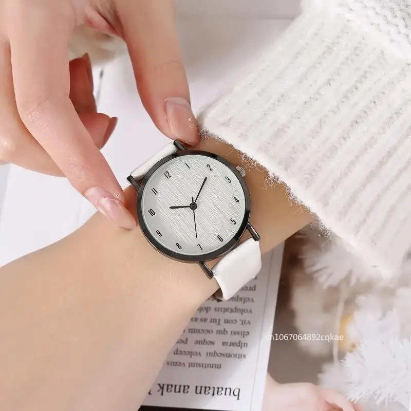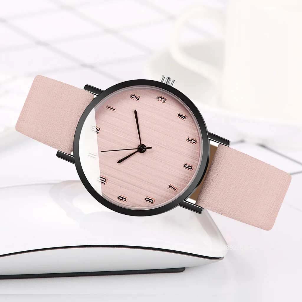 Elegant Round Girl Watch Digital Stripe Surface Quartz