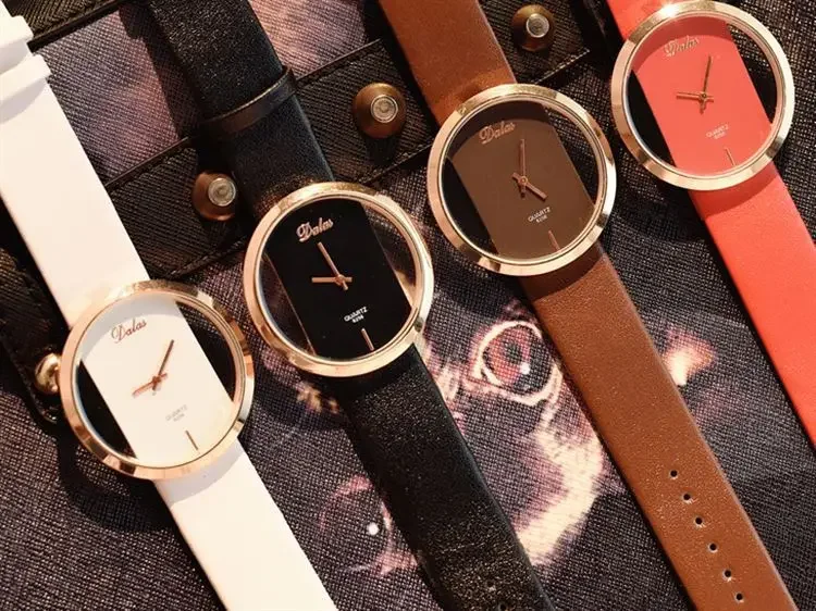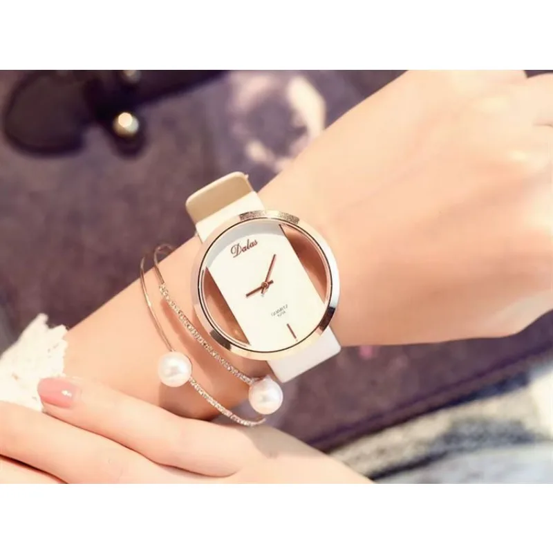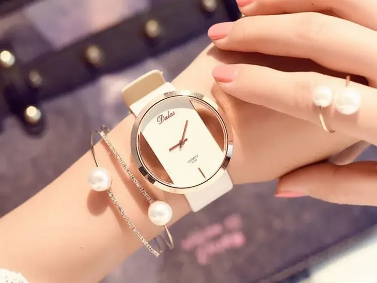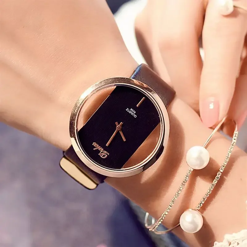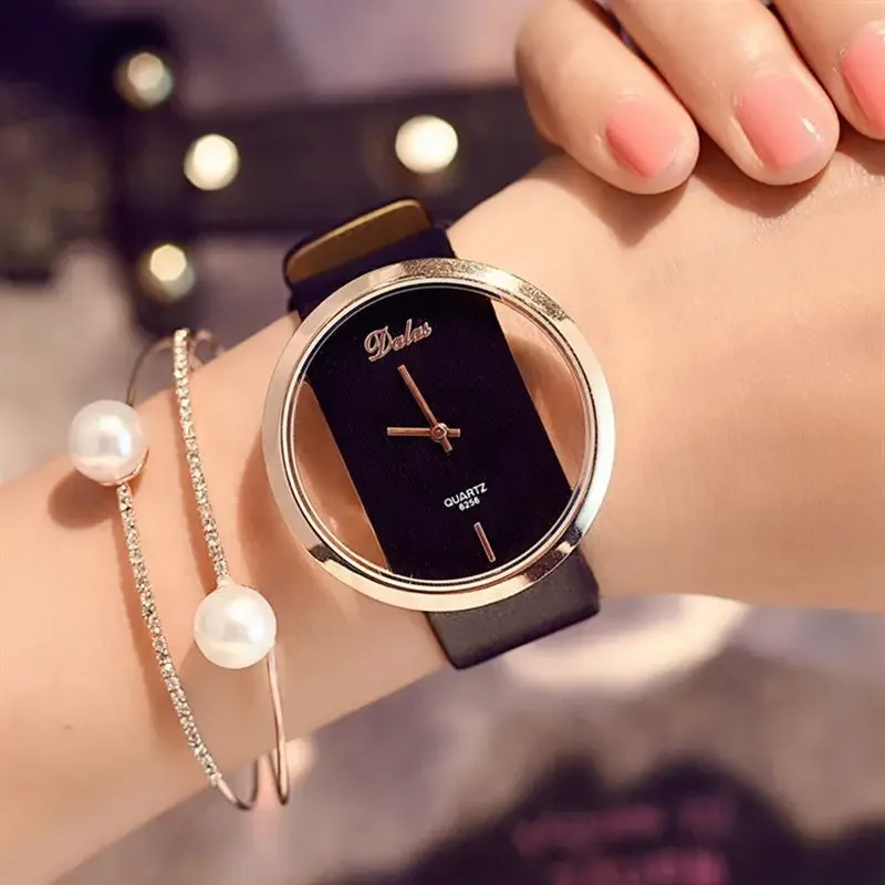 Women Fashion Business Casual Imitation Mechanical Watch Leather Belt Hollow Elegant Dress Ladies Gift Wristwatches