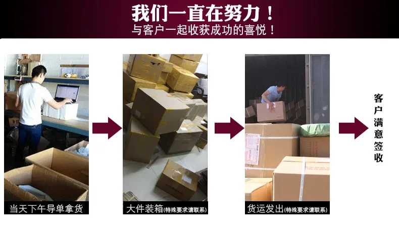 在发货前,我们有专人对于商品的数量,质量,包装作全面的核对及检查,杜绝有质量的商品出仓发给客户,也可避免收货后给彼此带来不必要的麻烦与不愉快.但是由于每天发货量巨大,批发客户在发货前只做外观检查,难免有瑕疵品夹于期间;所以收货前请您检查外包装是否完好,确定没有损坏迹象或异常再收货,收货后如遇个别产品质量问题,请先知会我们,并给您做相应处理:
