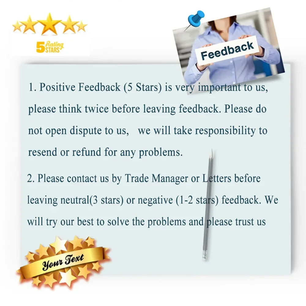 1.Positive Feedback (5 Stars) is very important to us, please think twice before leaving feedback.Please do not open dispute to us, we will take responsibility for resend or refund for any problems.